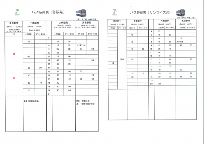 バスダイヤ変更日:令和7年8月12日(火)~8月15日(金)