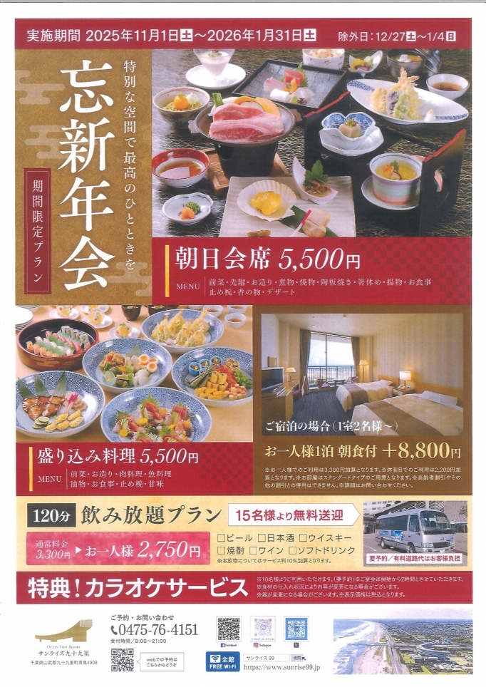 いつもサンライズ九十九里をご利用いただきましてありがとうございます。