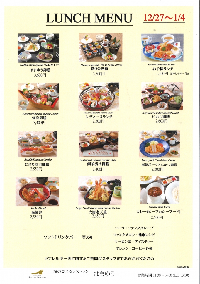 年末年始の昼食限定メニュー営業のお知らせ